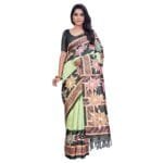 Digital bird and tree print suti silk saree with unstitched blouse